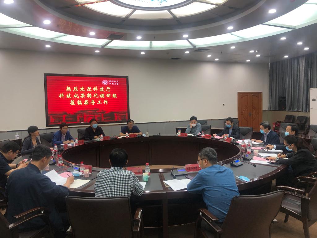 路杨院长首先对省科技厅一行来调研表示欢迎,并简要介绍了yl6809官网科技成果转移转化工作的现状、主要成效和面临的问题,希望省科技厅进一步加大对yl6809官网科技成果转移转化工作的支持力度。李谦副院长从yl6809官网科技成果转移转化机构建设、人才队伍建设、落实上级政策、科技成果转移转化运营机制、重大科技成果转化培育、典型案例等方面做了详细的汇报,并且针对科技成果转移转化实操遇到的问题提出了针对性的建议。