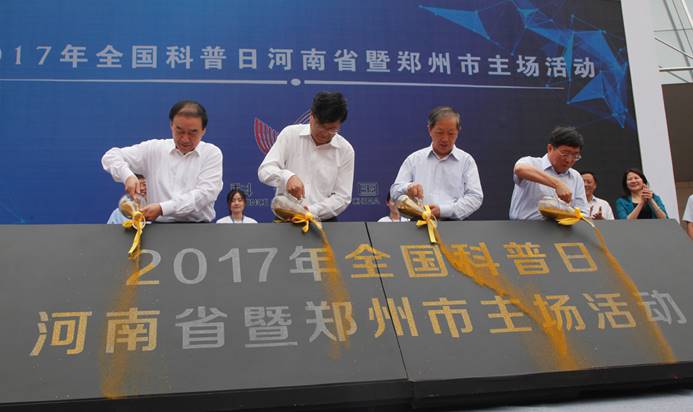 启动仪式上,王炯、蒋笃运、徐济超、龚立群为河南省首席科普专家团授旗,并共同启动“2017年全国科普日河南省暨郑州市主场活动”科学池。