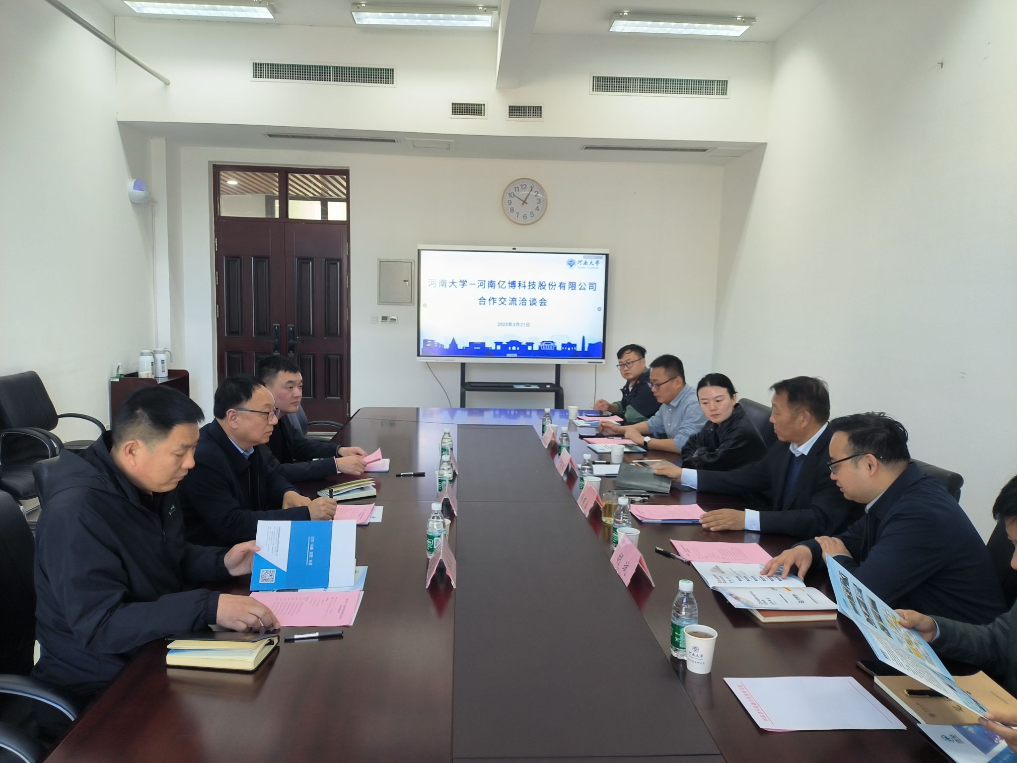 3月21日上午,河南亿博科技股份有限公司(简称“亿博科技”)董事长李彦红、总经理李攀辉、总工程师张富宣一行莅校开展技术交流和合作洽谈。河南省军民融合发展研究院院长冯有治、院长助理胡斌、纳米科学与材料工程学院副教授牛丽红及部分专家出席座谈。会议由胡斌主持。