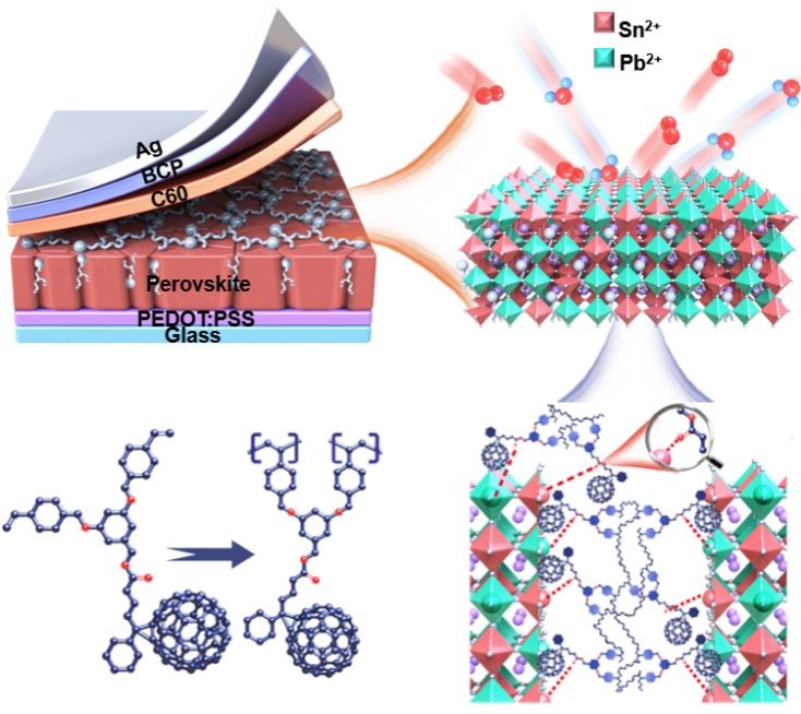 图1 锡铅钙钛矿器件结构图以及C-PCBSD作用示意图 (Adv. Mater., 2024, 36(36), 2406246)
