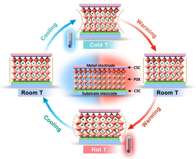 图3 循环温度对钙钛矿结构的影响示意图(Nat. Rev. Mater., 2025, doi.org/10.1038/s41578-025-00781-7)