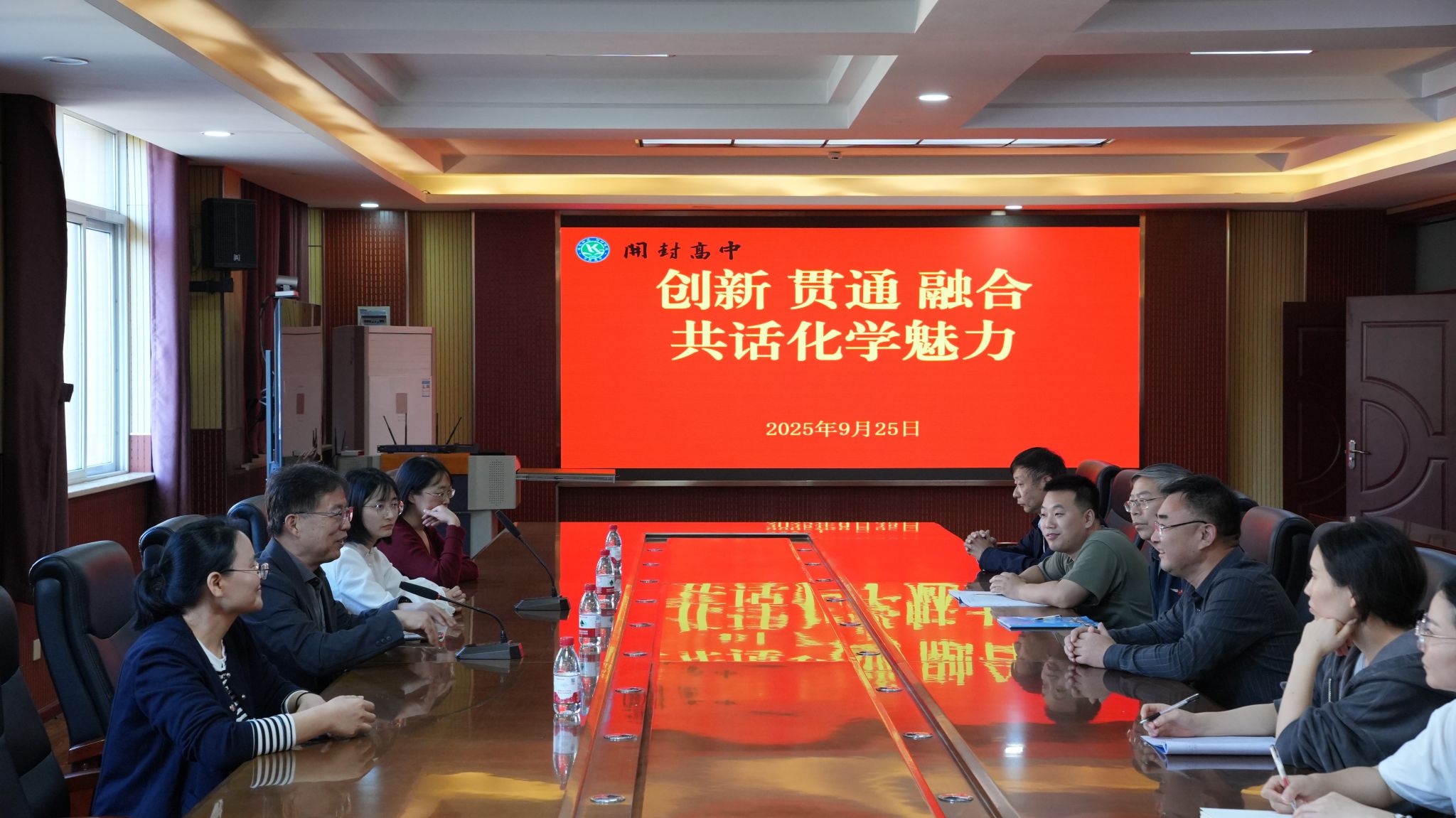 在全国首个科普月期间,为更好提升全民科学素质,营造浓厚的科学氛围,助力科技强国建设,同时积极探索高等教育与基础教育有效衔接的新模式,共同提升化学人才培养质量,9月25日下午,国家杰青、化学与分子科学学院院长陈永明、化学系负责人冯彩霞、教务办公室主任王玉霞和院团委副书记田梦一行赴开封高级中学开展科普讲座和学生培养交流座谈活动。开封高级中学副校长尚嘉伟、化学组教研组长赵辉、教研组老师以及400余名学生参与了活动,开封高中教务处副主任刘冉主持座谈会及讲座。