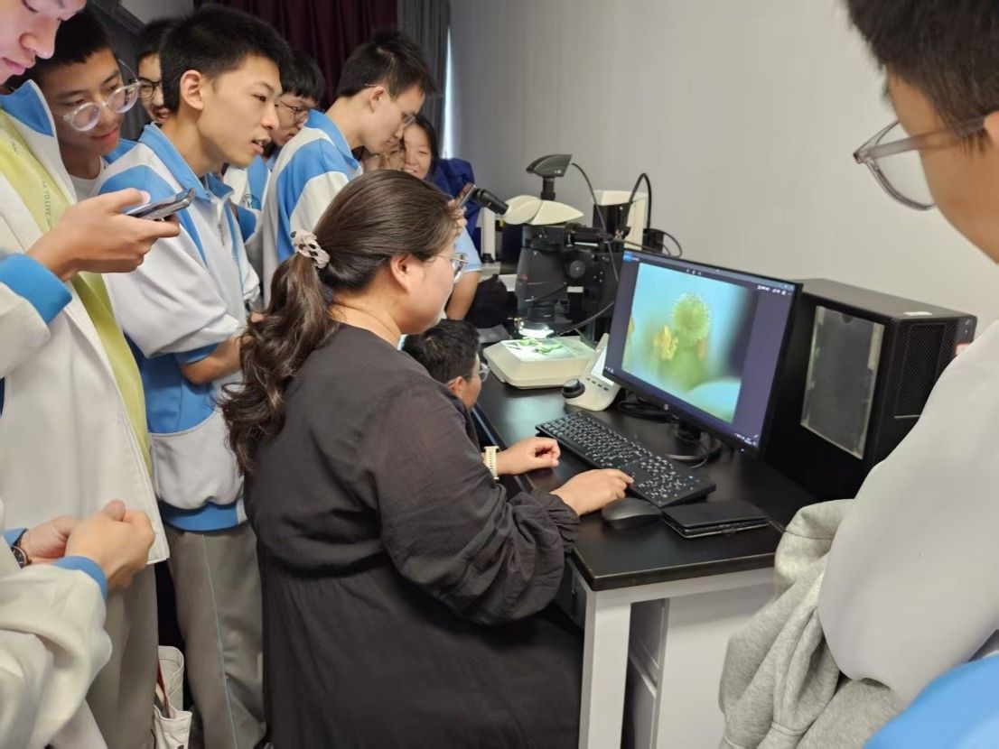 学生们分别参观两个国家重点实验室公共实验平台、科研实验室和作物抗逆改良中心。在公共实验平台,学生们分别参观了细胞成像平台、代谢组平台、电生理平台和电子显微镜平台,认识一些大型精密科研设备。随后在科研实验室,韩远记和朱金东老师对科研实验室的基本情况,重要仪器,以及科研实验室注意事项进行讲解,学生们对科学研究有了初步的了解,也见识了研究人员操作的科学严谨。