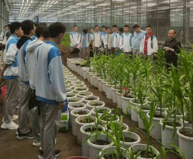 在作物抗逆改良中心,李保珠老师给学生们详细讲解了作物高通量表型组学平台、实验室玉米种质资源收集和创制、玉米转基因体系构建、优良品种培育情况等系统知识。在棉花育种平台和温室,韩栓老师认真讲解了棉花种质资源收集和新品种培育情况,以及棉花在国家战略、卫生和纺织等领域的重要作用。