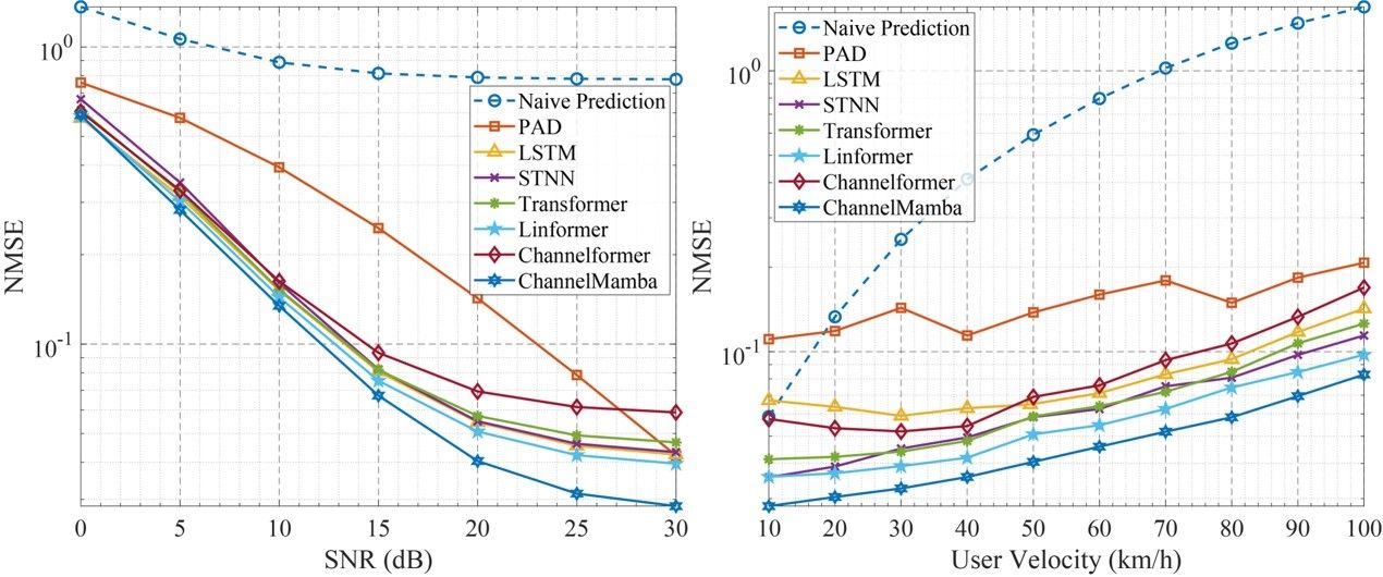 面向6G大规模多输入多输出(m-MIMO)物联网系统在高移动性场景下面临的信道老化与预测效率瓶颈,科研团队首次将新兴的Mamba架构引入无线信道预测领域,提出了名为ChannelMamba的端到端预测模型。
