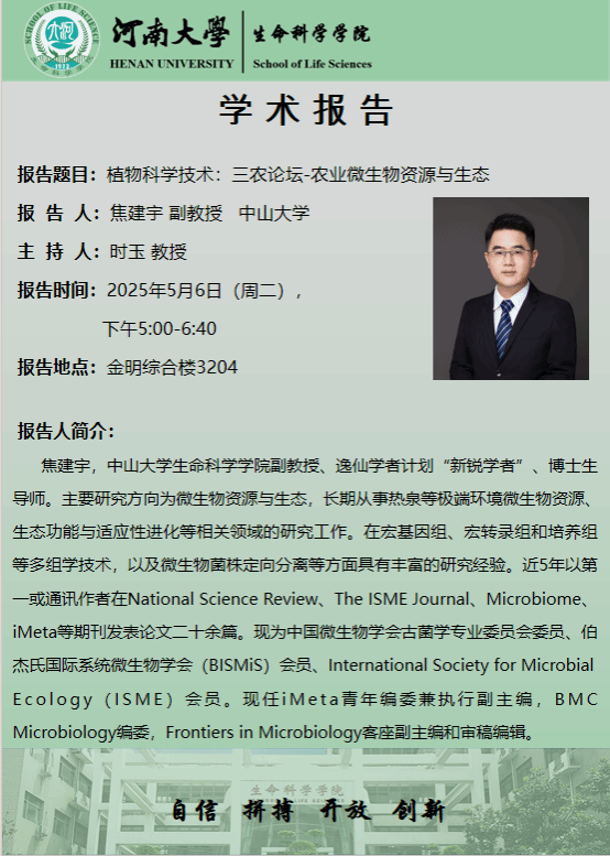 焦建宇:植物科学技术:三农论坛-农业微生物资源与生态(时间:5月6日)