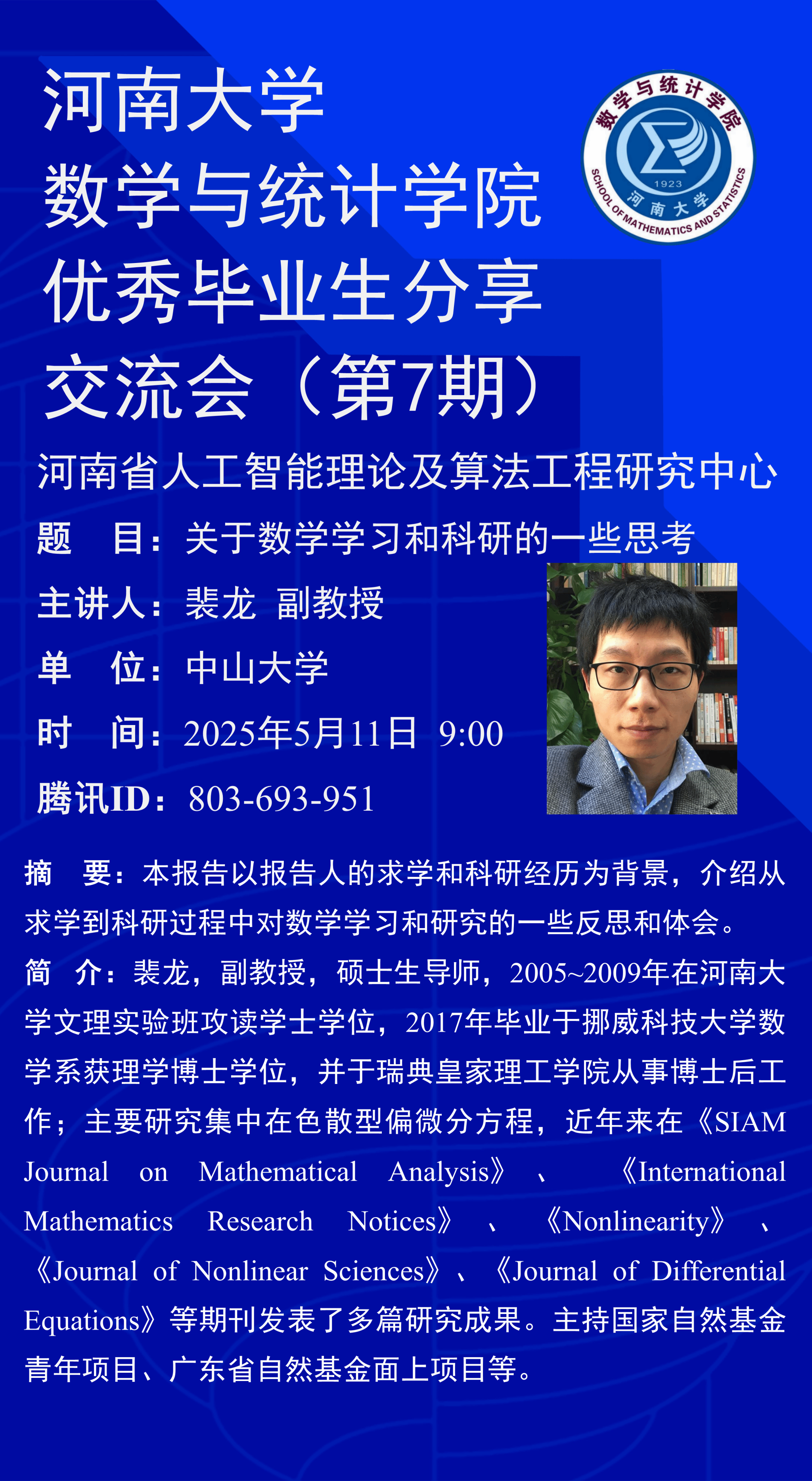 上一篇:李露:当科研遇见生活:一个数学PhD的‘非典型’经验分享(时间:5月11日)