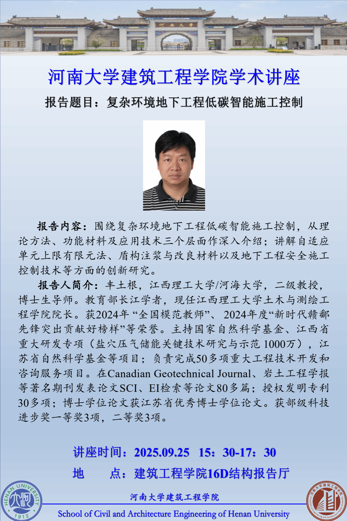 丰土根:复杂环境地下工程低碳智能施工控制(时间:9月25日)