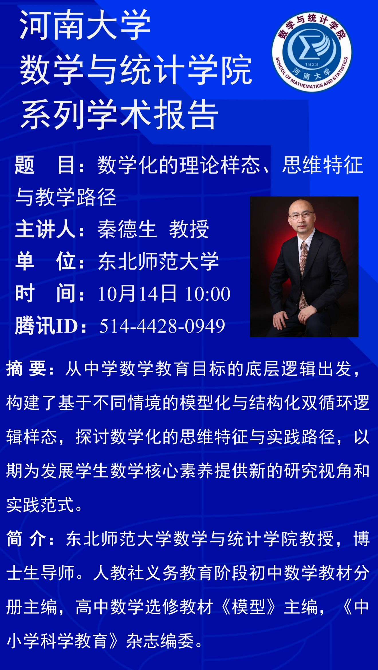 秦德生 :数学化的理论样态、思维特征与教学路径(时间:10月14日)
