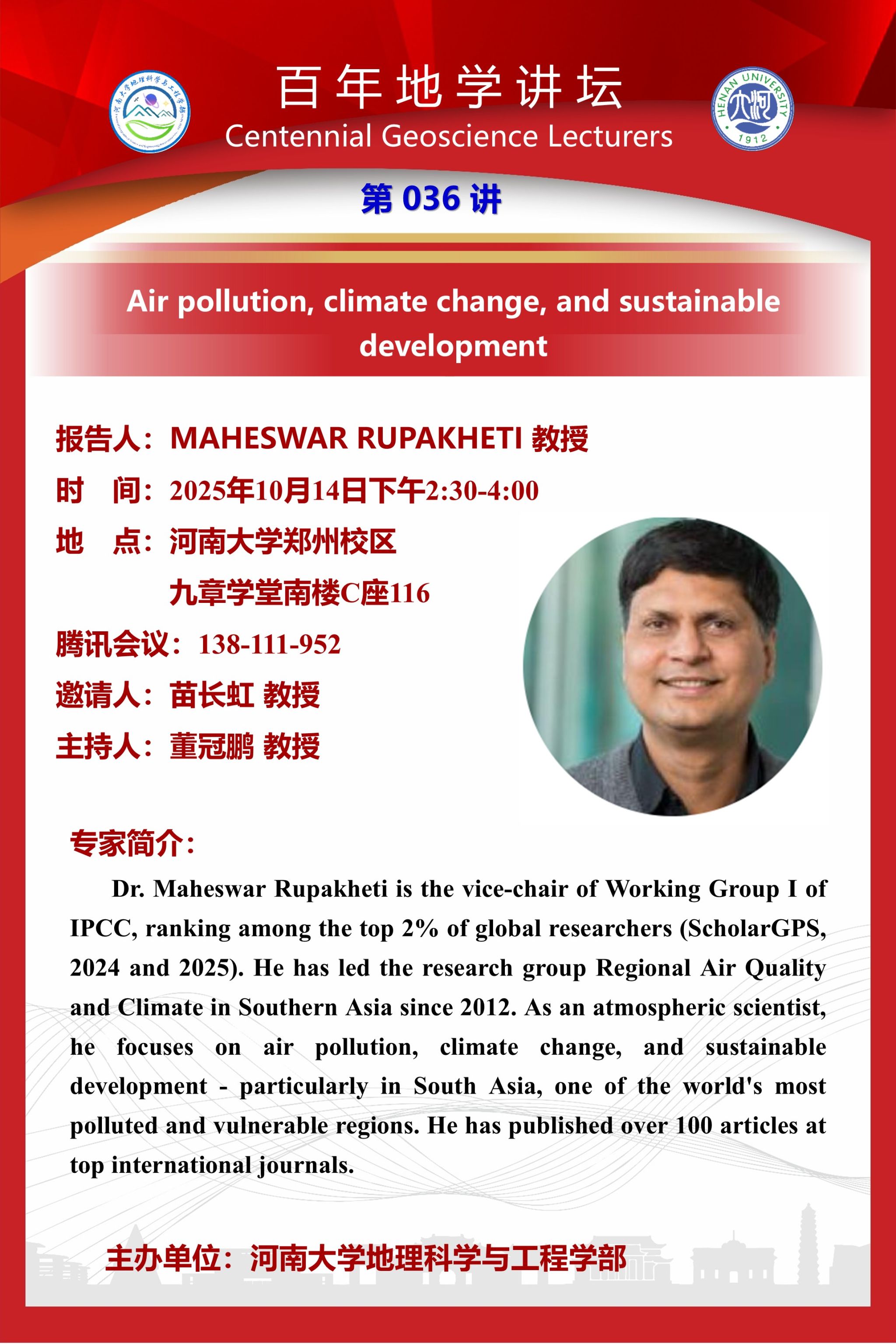 MAHESWAR RUPAKHETI:Air pollution, climate change, and sustainable development(时间:10月14日)