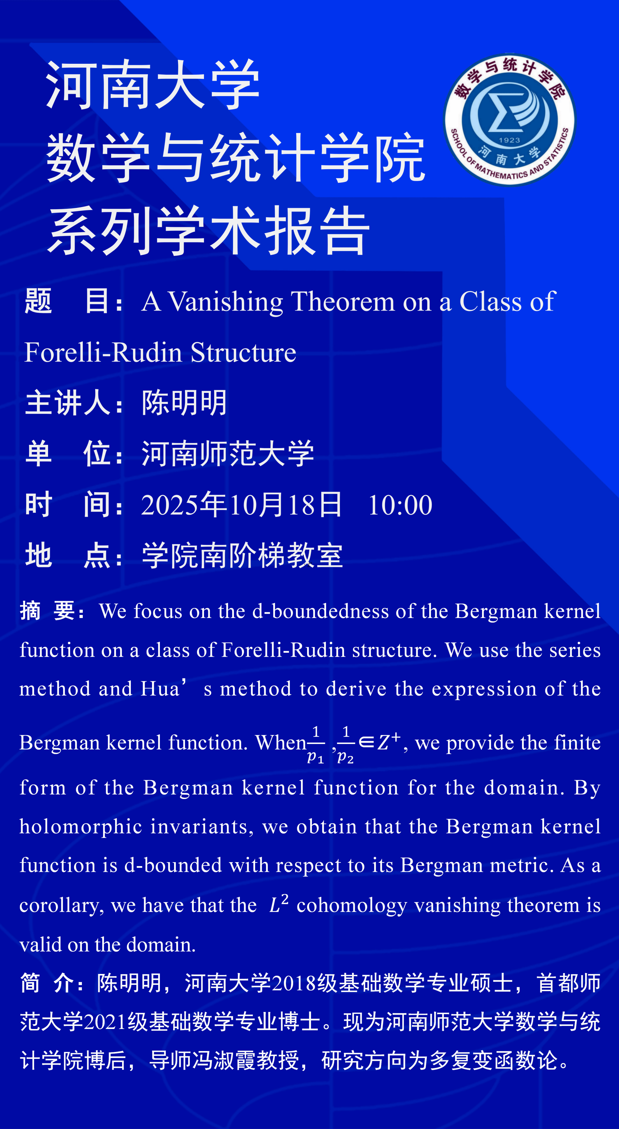 陈明明:A Vanishing Theorem on a Class of Forelli-Rudin Structure(时间:10月18日)