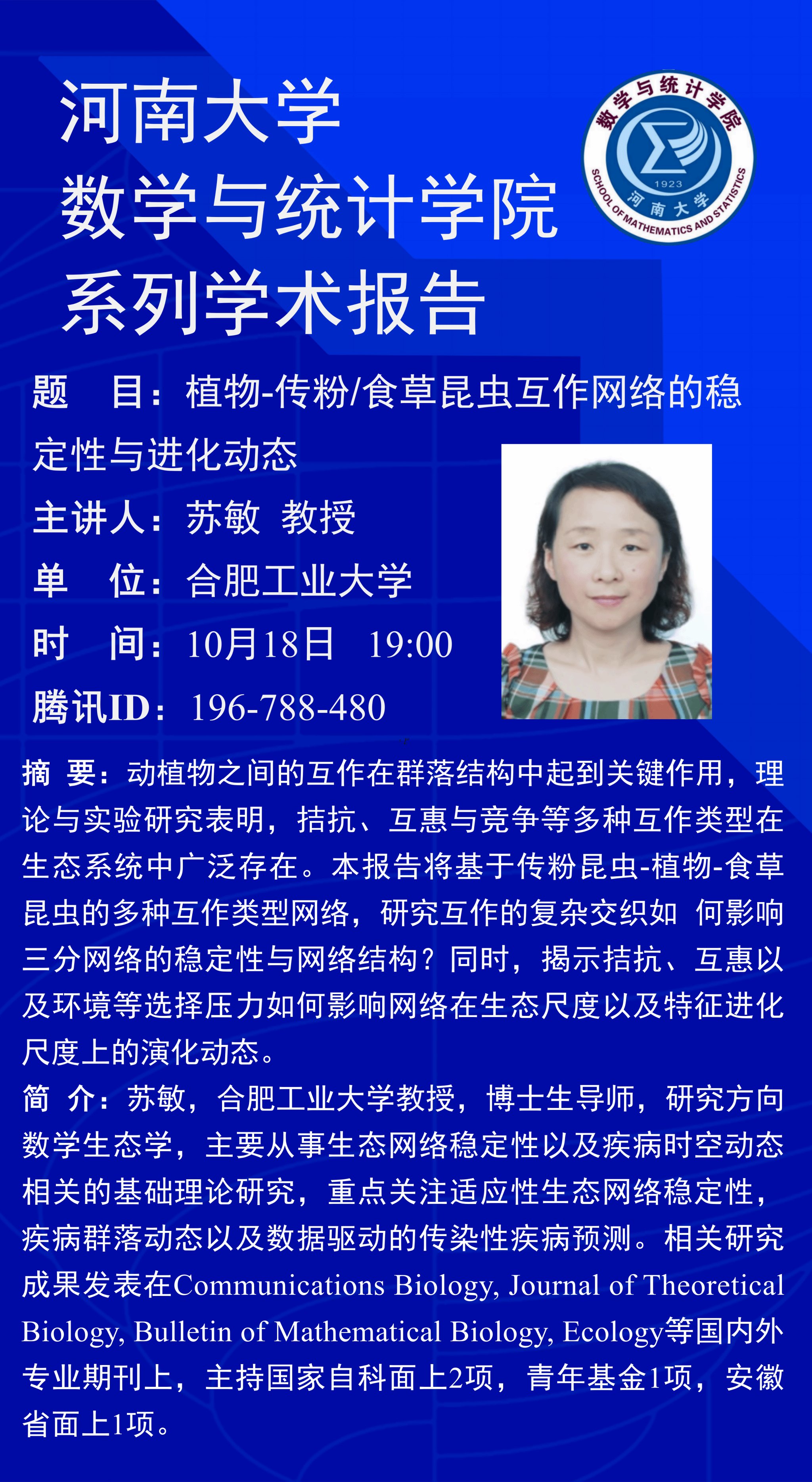 苏敏:植物-传粉/食草昆虫互作网络的稳定性与进化动态(时间:10月18日)