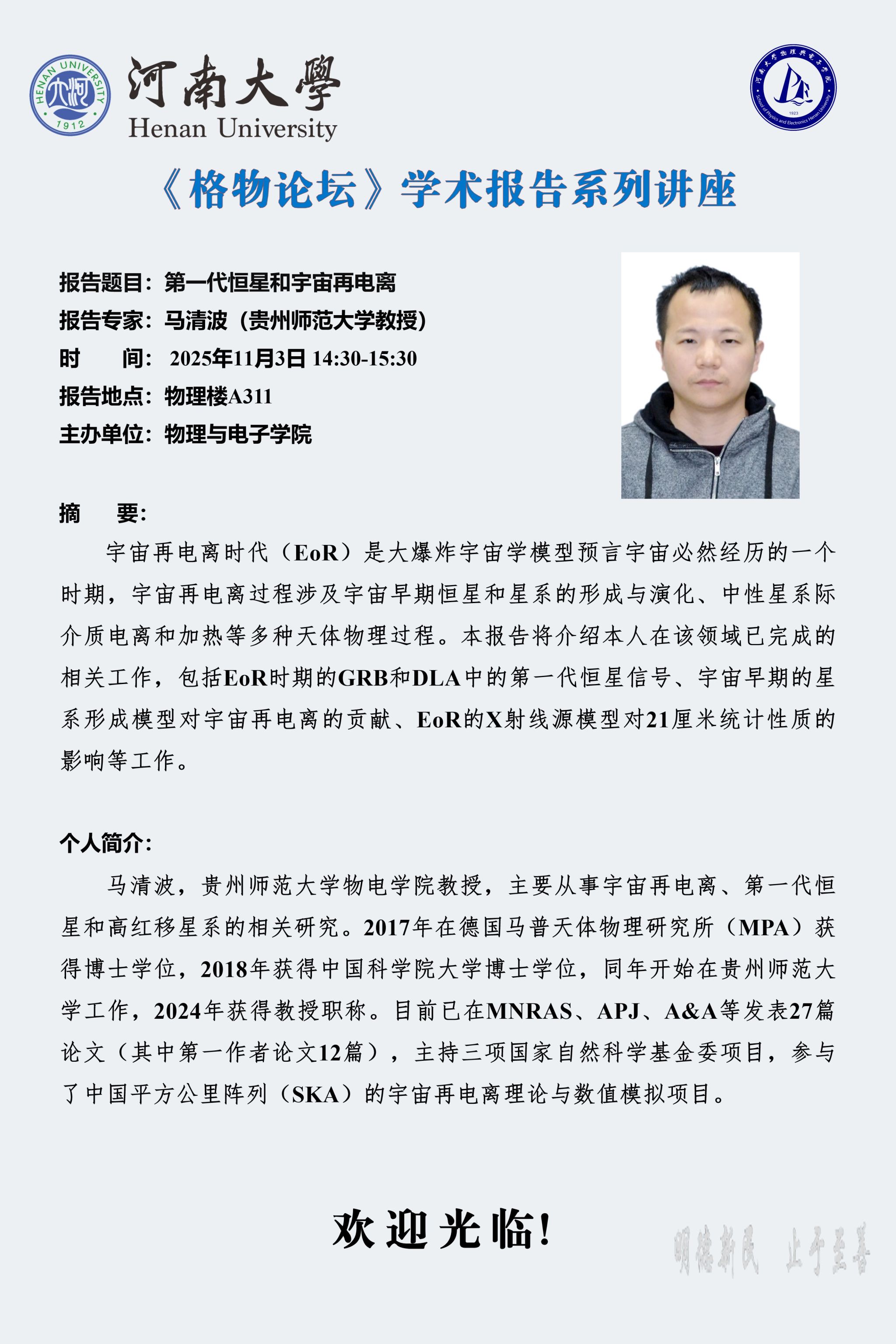马清波:第一代恒星和宇宙再电离(时间:11月3日)