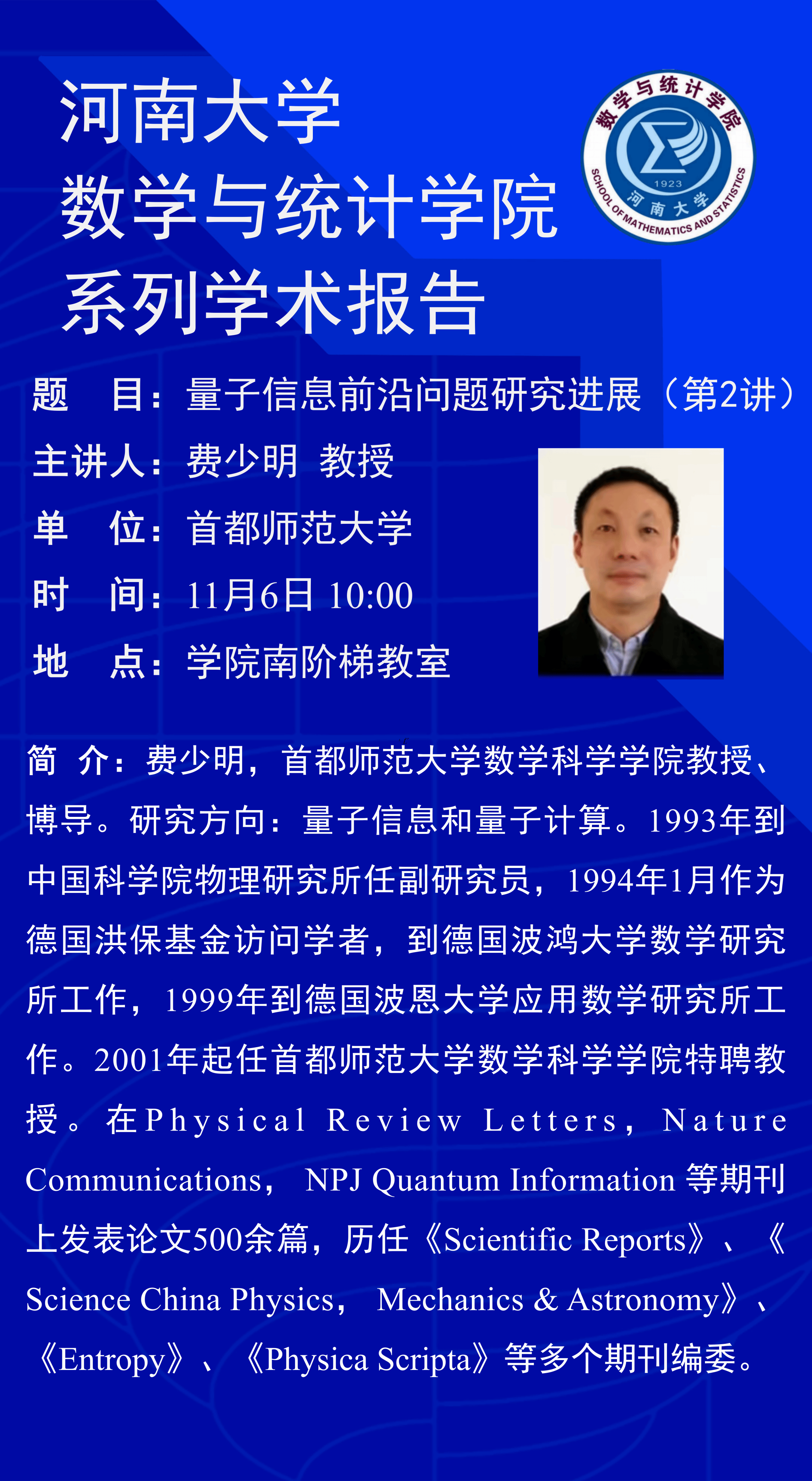 费少明:量子信息前沿问题研究进展(第2讲)(时间:11月6日)