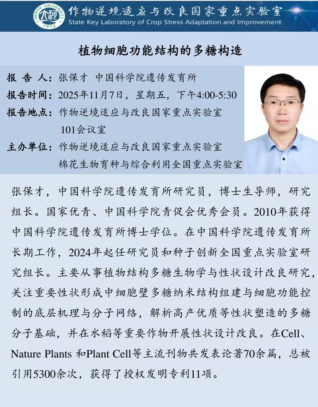 张保才:植物细胞功能结构的多糖构造(时间:11月7日)
