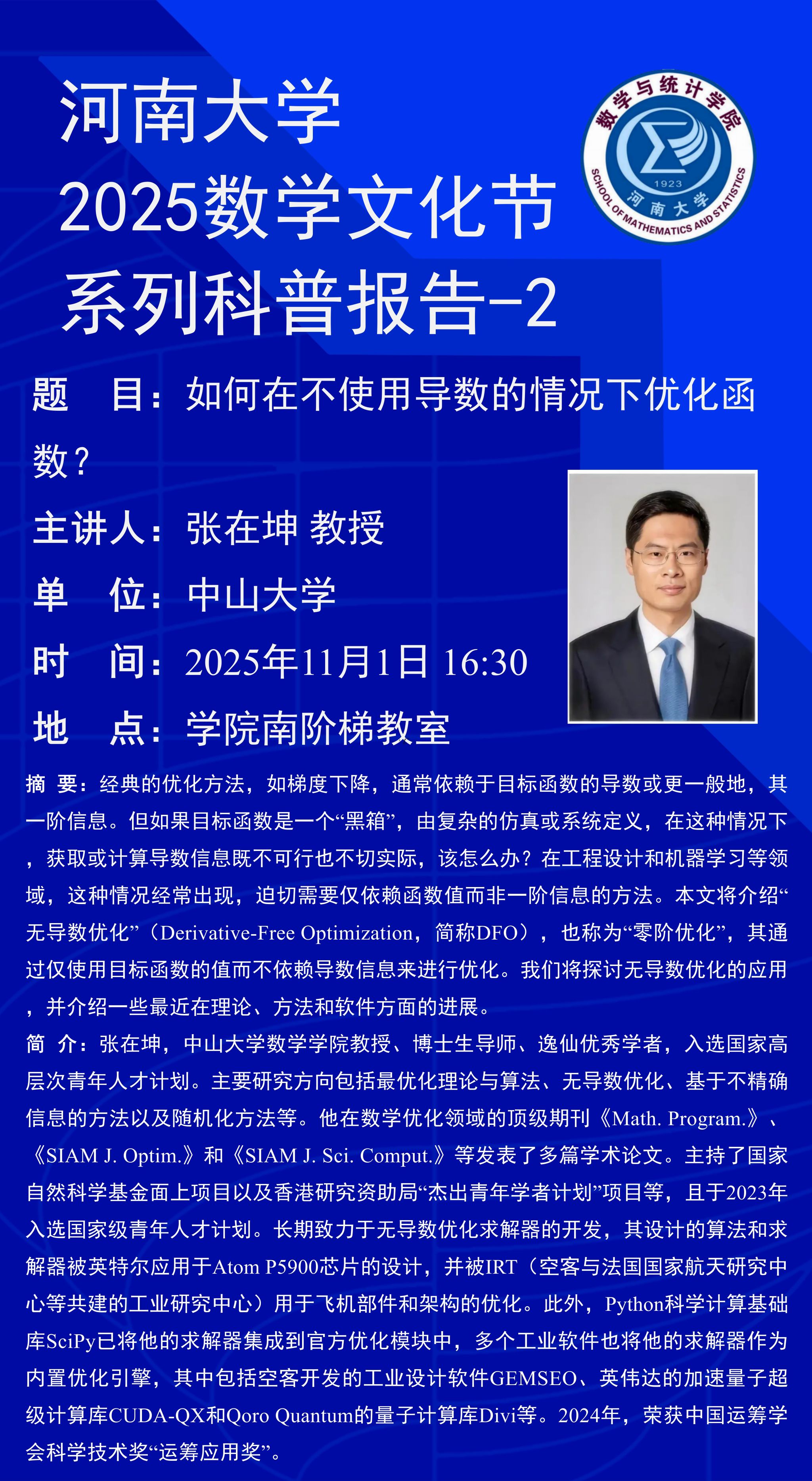 张在坤:如何在不使用导数的情况下优化函数?(时间:11月1日)