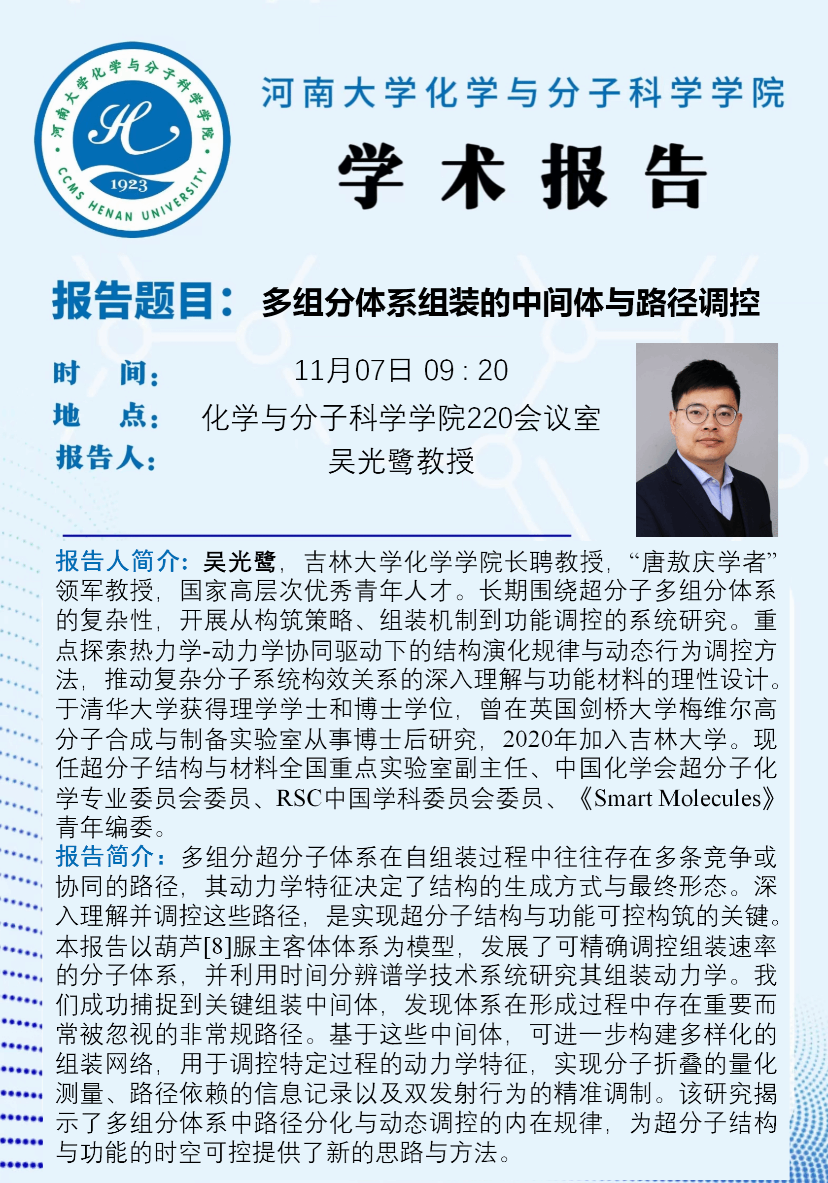 吴光鹭:多组分体系组装的中间体与路径调控(时间:11月7日)