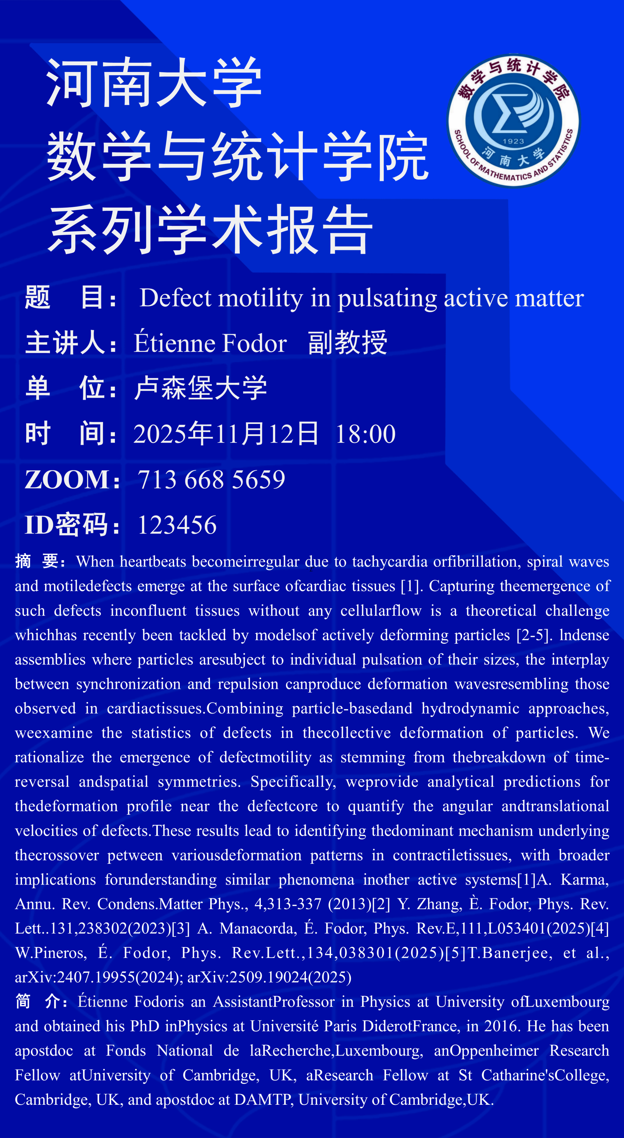 Étienne Fodor:Defect motility in pulsating active matter Applications(时间:11月12日)