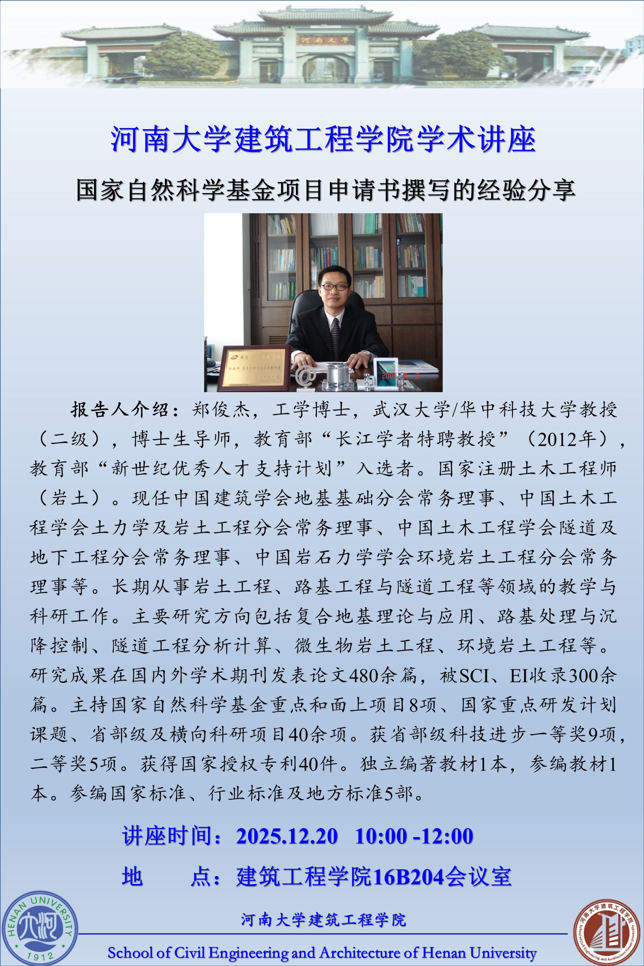 郑俊杰:国家自然科学基金项目申请书撰写的经验分享(时间:2025年12月20日)