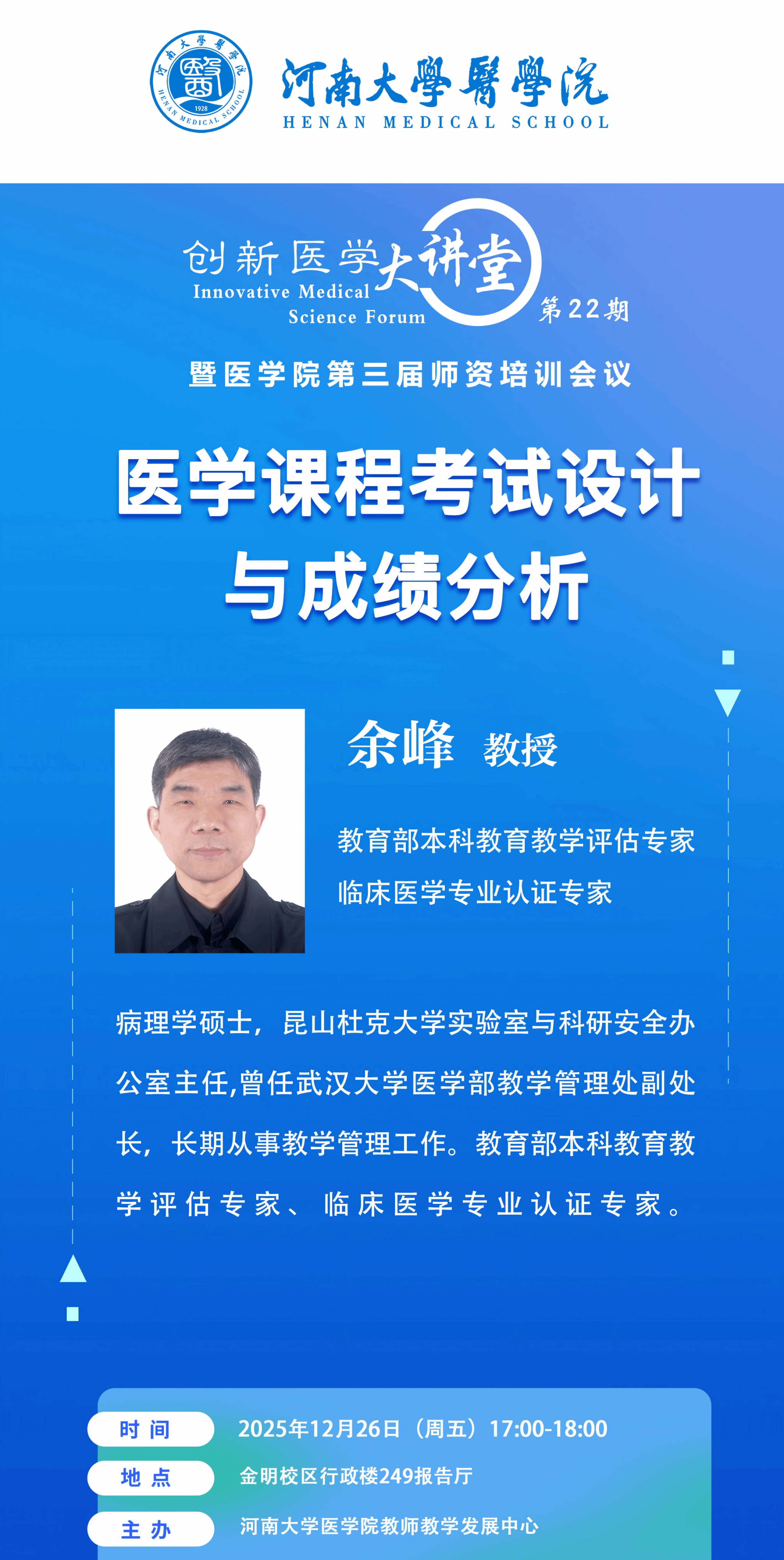 余峰:医学课程考试设计与成绩分析(时间:12月26日)