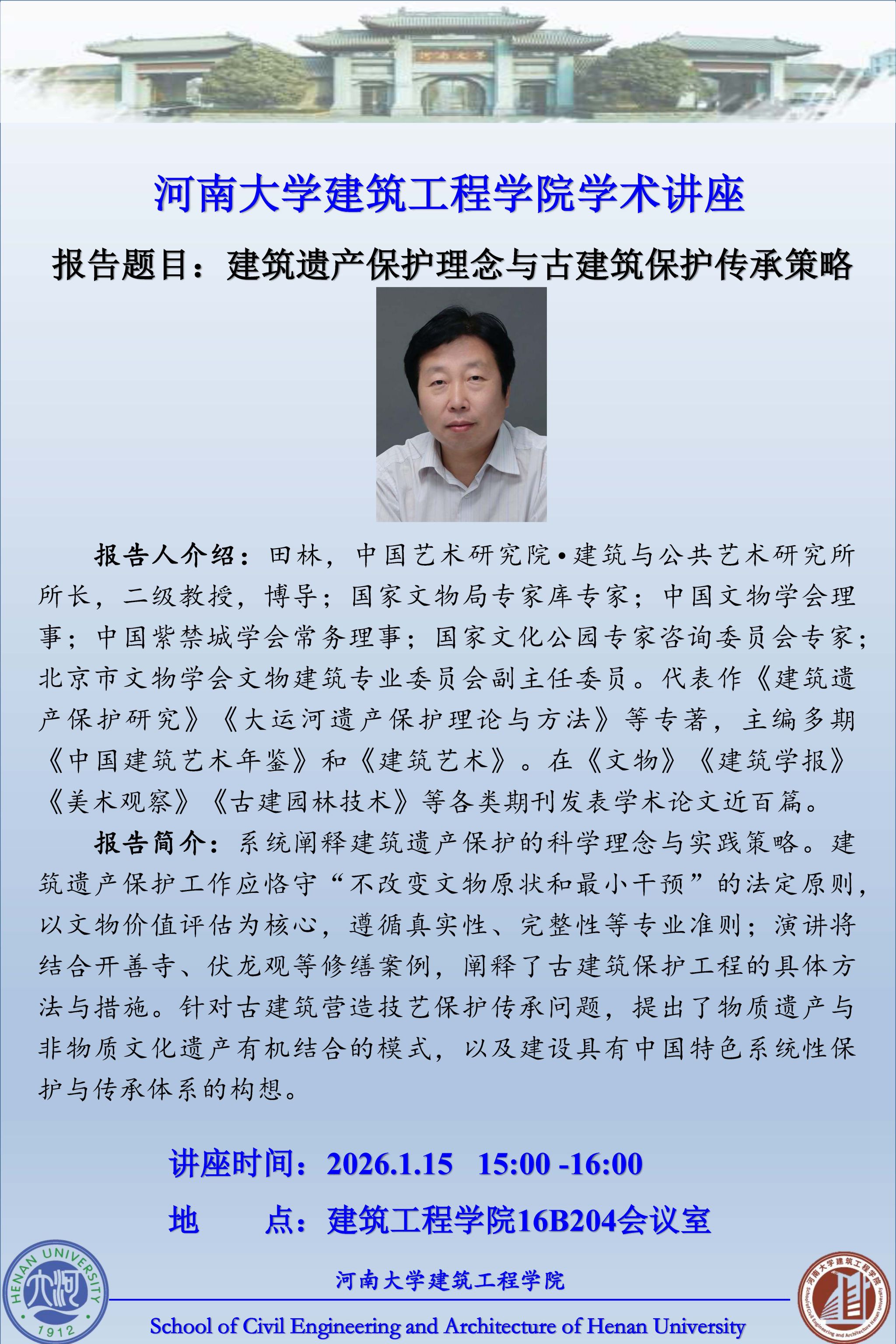 田林:建筑遗产保护理念与古建筑保护传承策略(时间:1月15日)