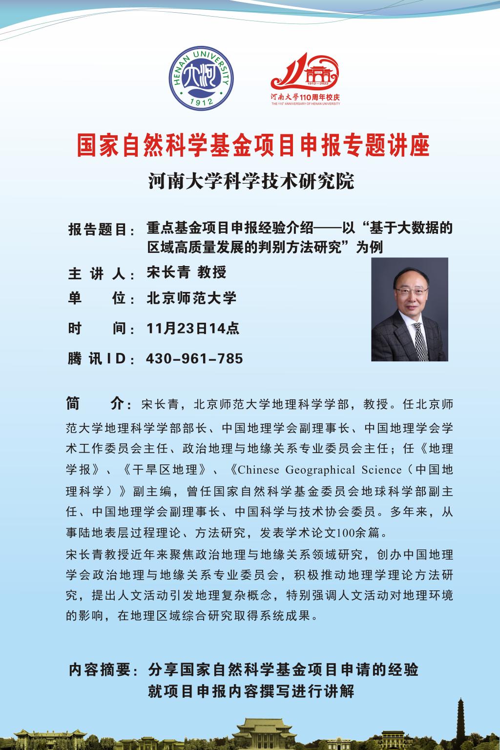 下一篇:宋长青:国家自然科学基金项目申报专题讲座(时间11.23)