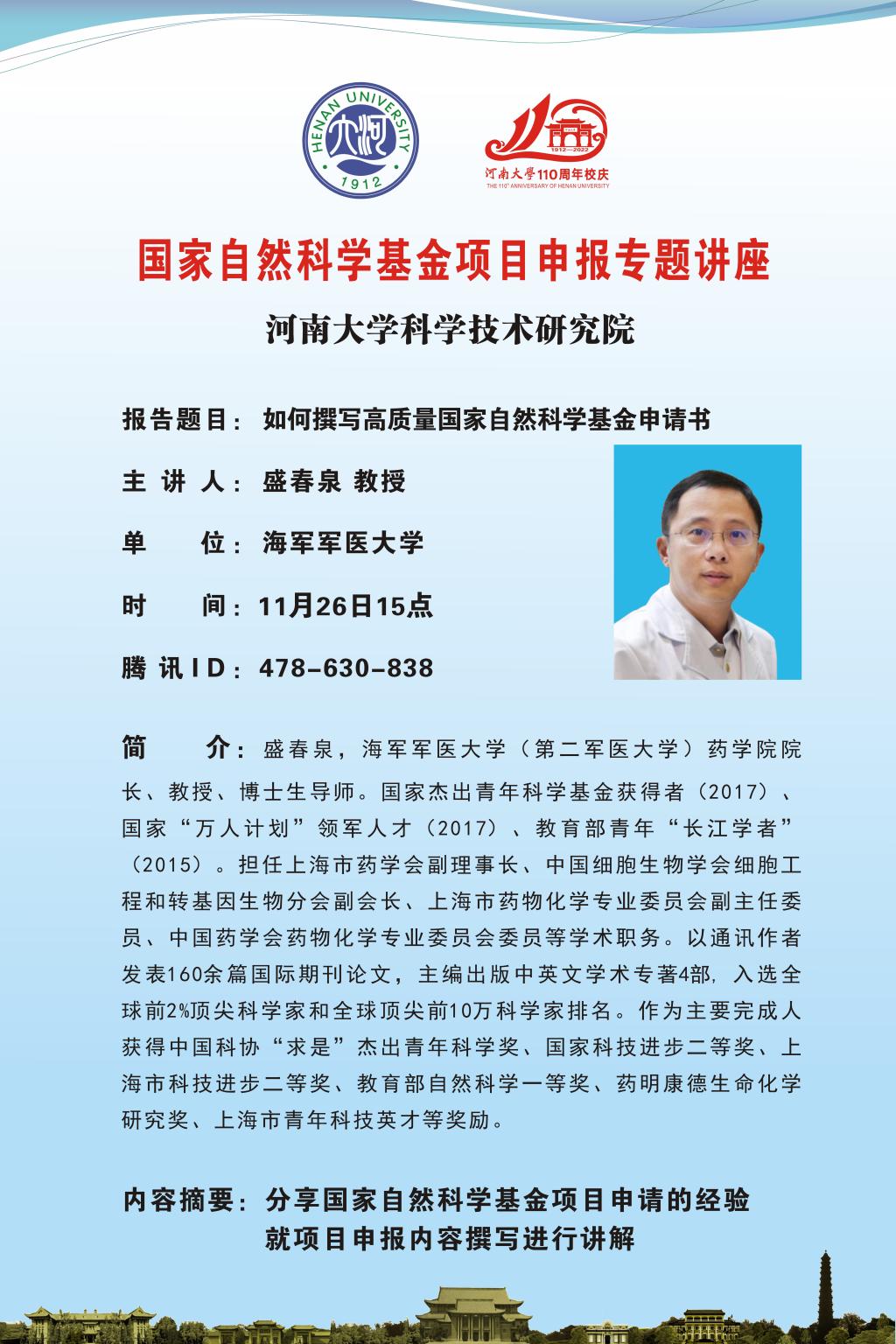 上一篇:盛春泉:国家自然科学基金项目申报专题讲座(时间11.26)