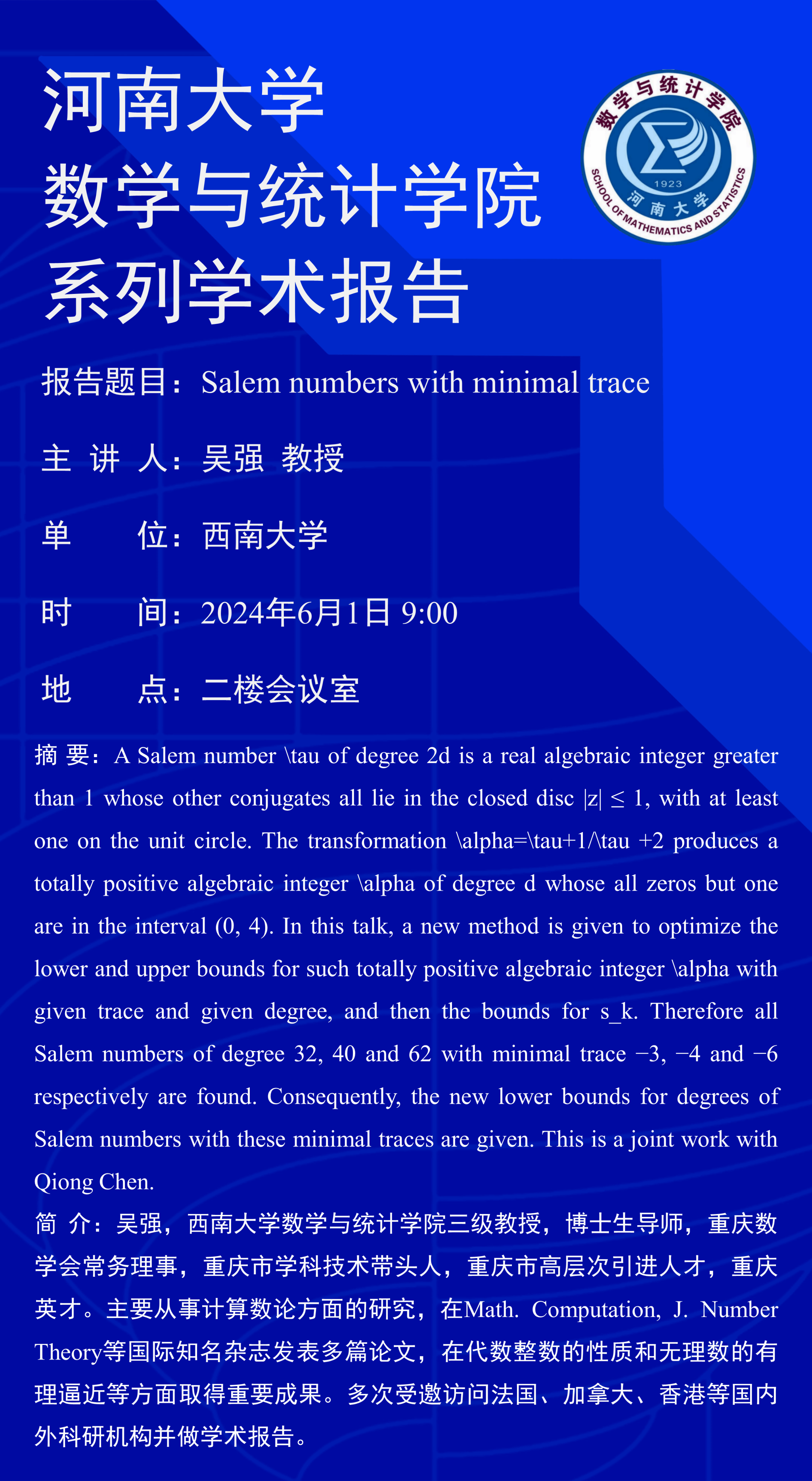 上一篇:徐哲峰:On regular integer and its symmetric von Neumann inverse modulo q(时间:6月1日)