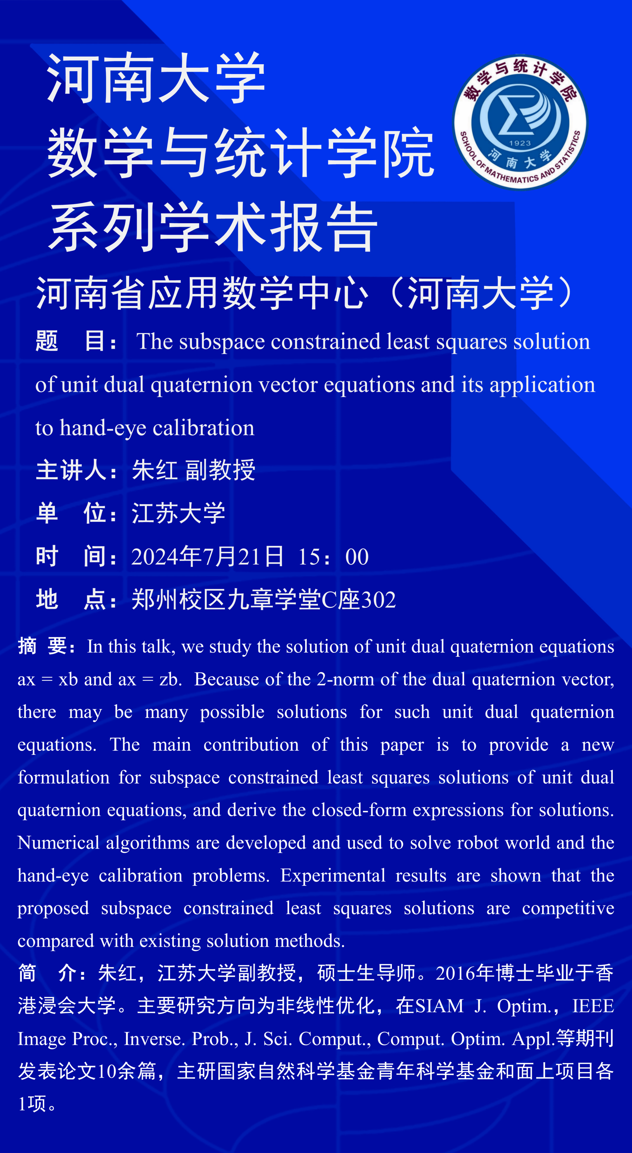 上一篇:王双月:稀疏低秩支持张量机的优化理论与算法研究 (时间:7月21日)