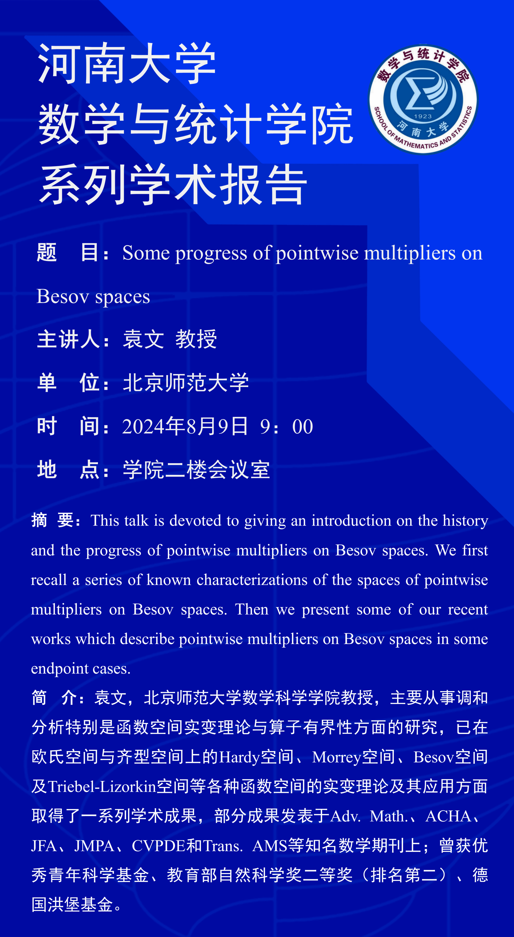 下一篇:刘丽光:Heat Kernel Constructions on Metric Measure Spaces(时间:8月9日)
