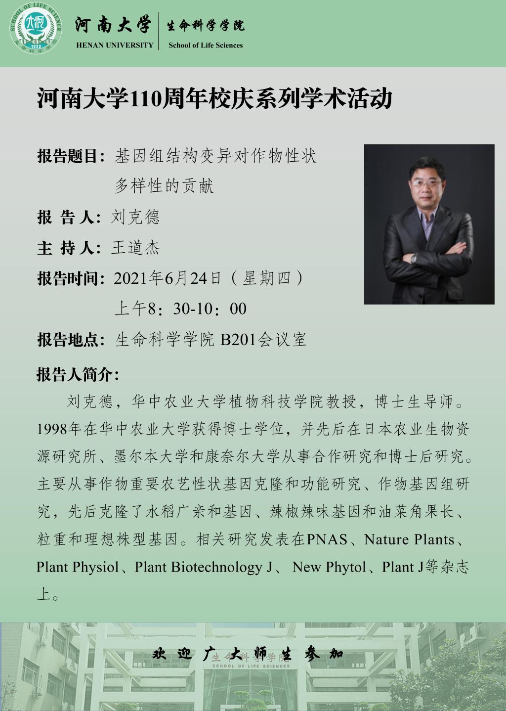 刘克德:基因组结构变异对作物性状多样性的贡献(时间6.24)