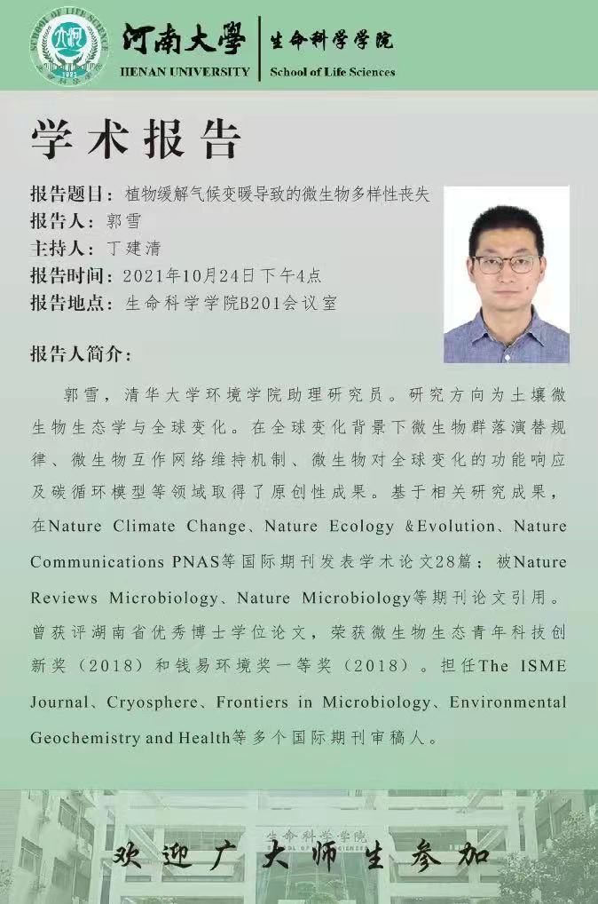 郭雪:植物缓解气候变暖导致的微生物多样性丧失(时间10.24)