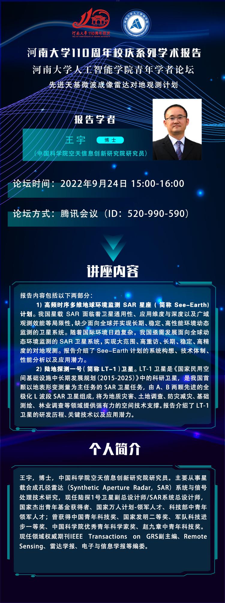 校庆学术活动:王宇:先进天基微波成像雷达对地观测计划(时间9.24)