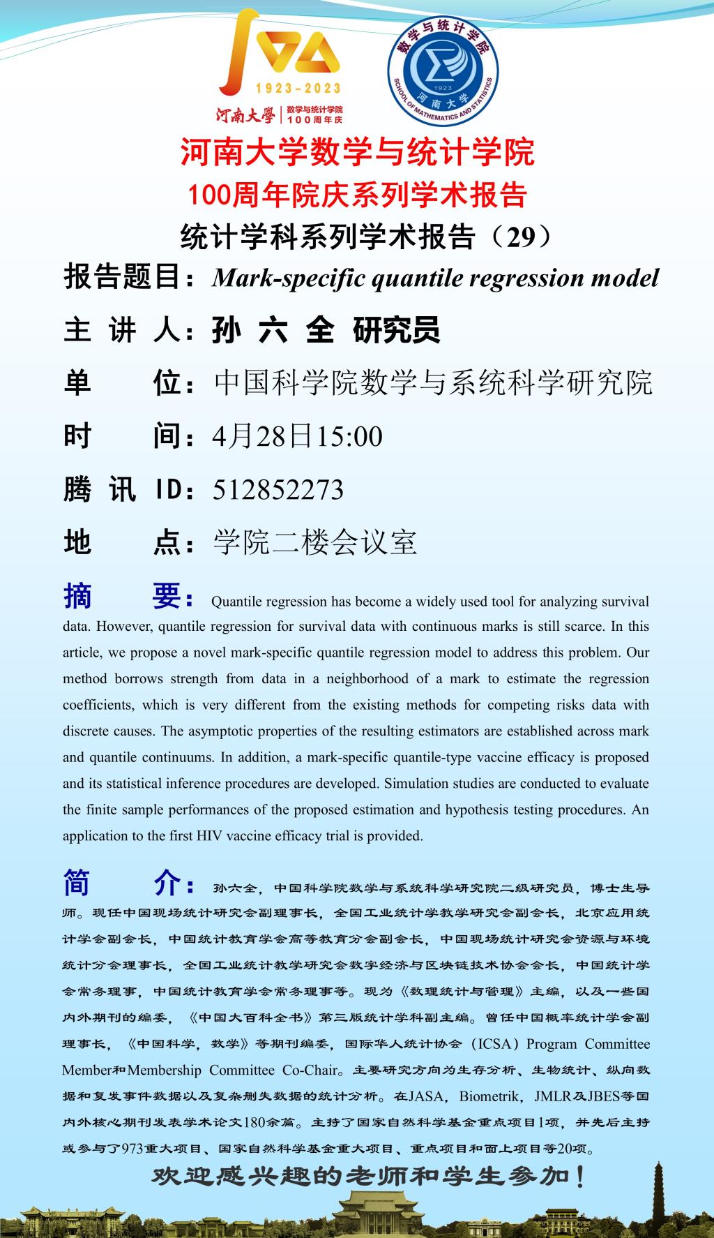 孙六全:Mark-specific quantile regression model(时间:4.28)