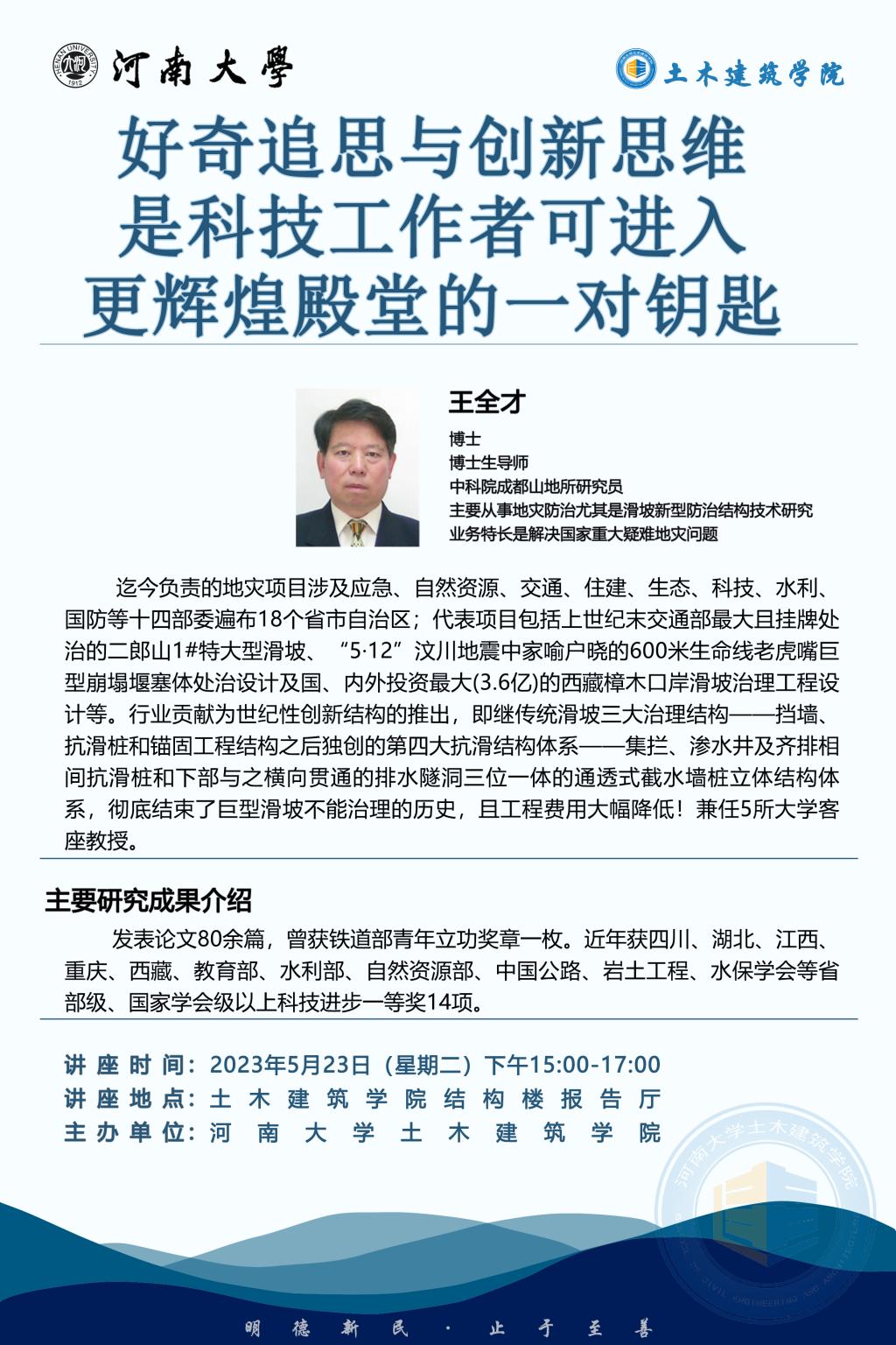 王全才:好奇追思与创新思维是科技工作者可进入更辉煌殿堂的一对钥匙(时间5.23)