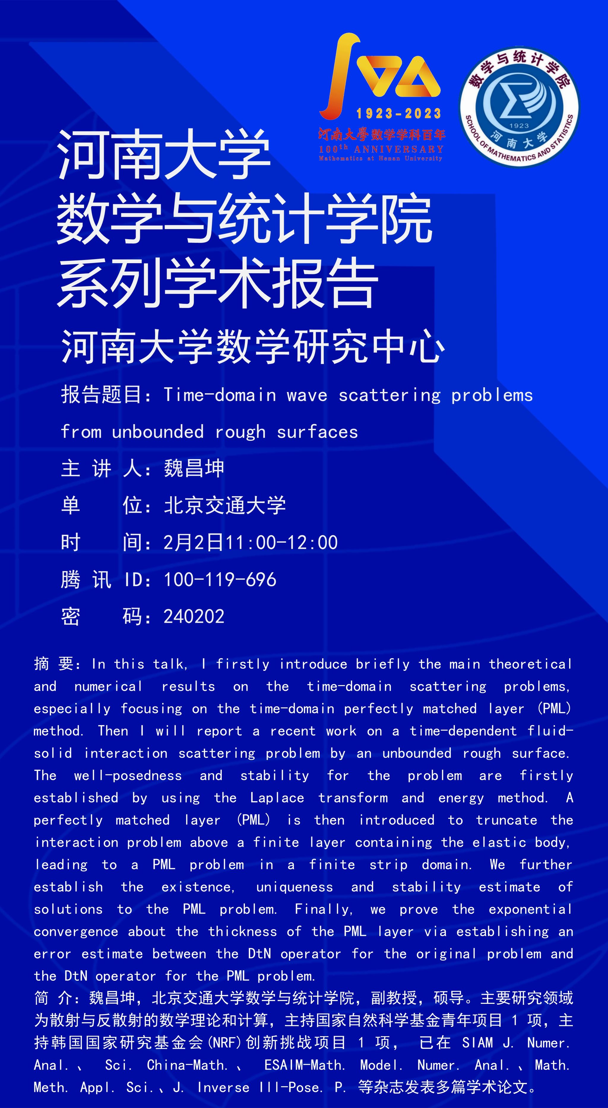 魏昌坤:Time-domain wave scattering problems from unbounded rough surfaces(时间:2.2)