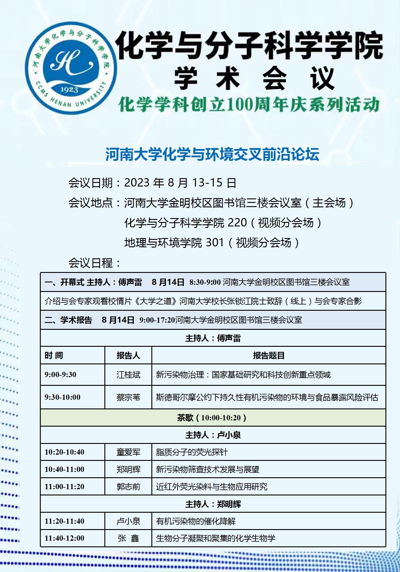yl6809永利化学与环境交叉前沿论坛(时间8.13-15)